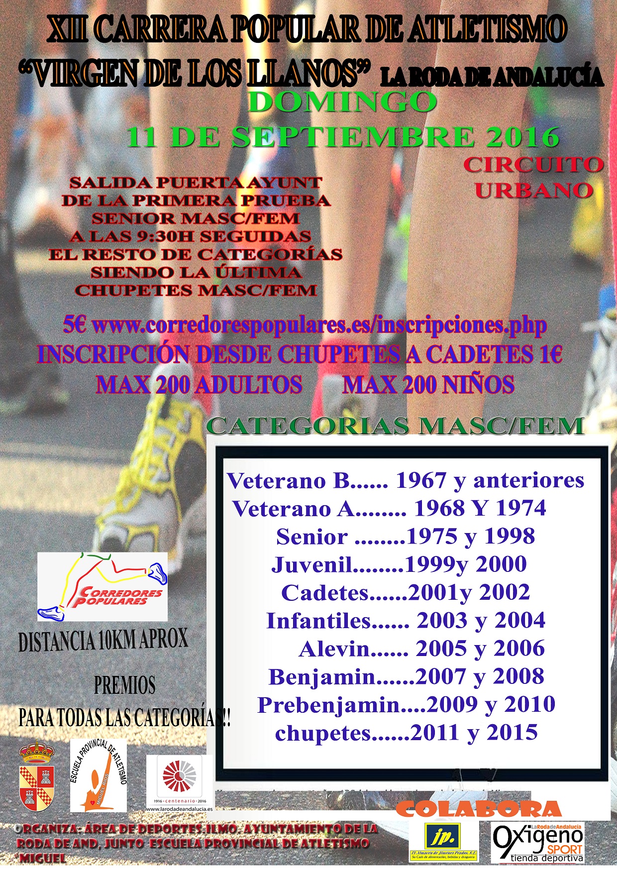 XII Carrera Popular de Atletismo 'Virgen de Los Llanos' que se celebrará el domingo día 11 de septiembre. Se trata de un circuito urbano de unos 10 kilómetrosaproximadamente.