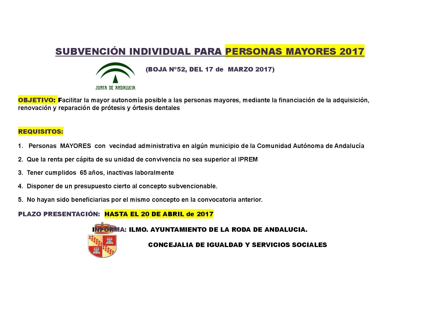 Subvenciones individuales para personas mayores