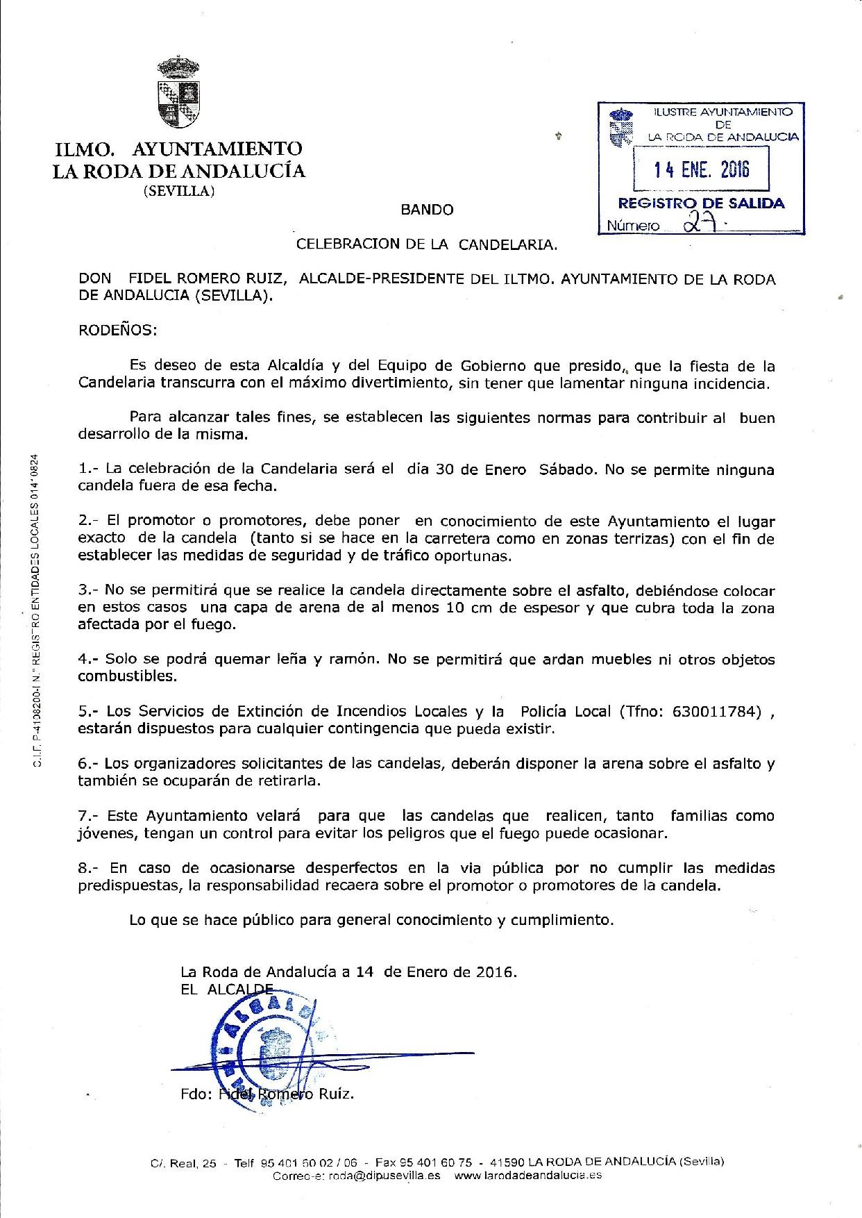 Bando celebración de la Fiesta de la Candelaria 2016