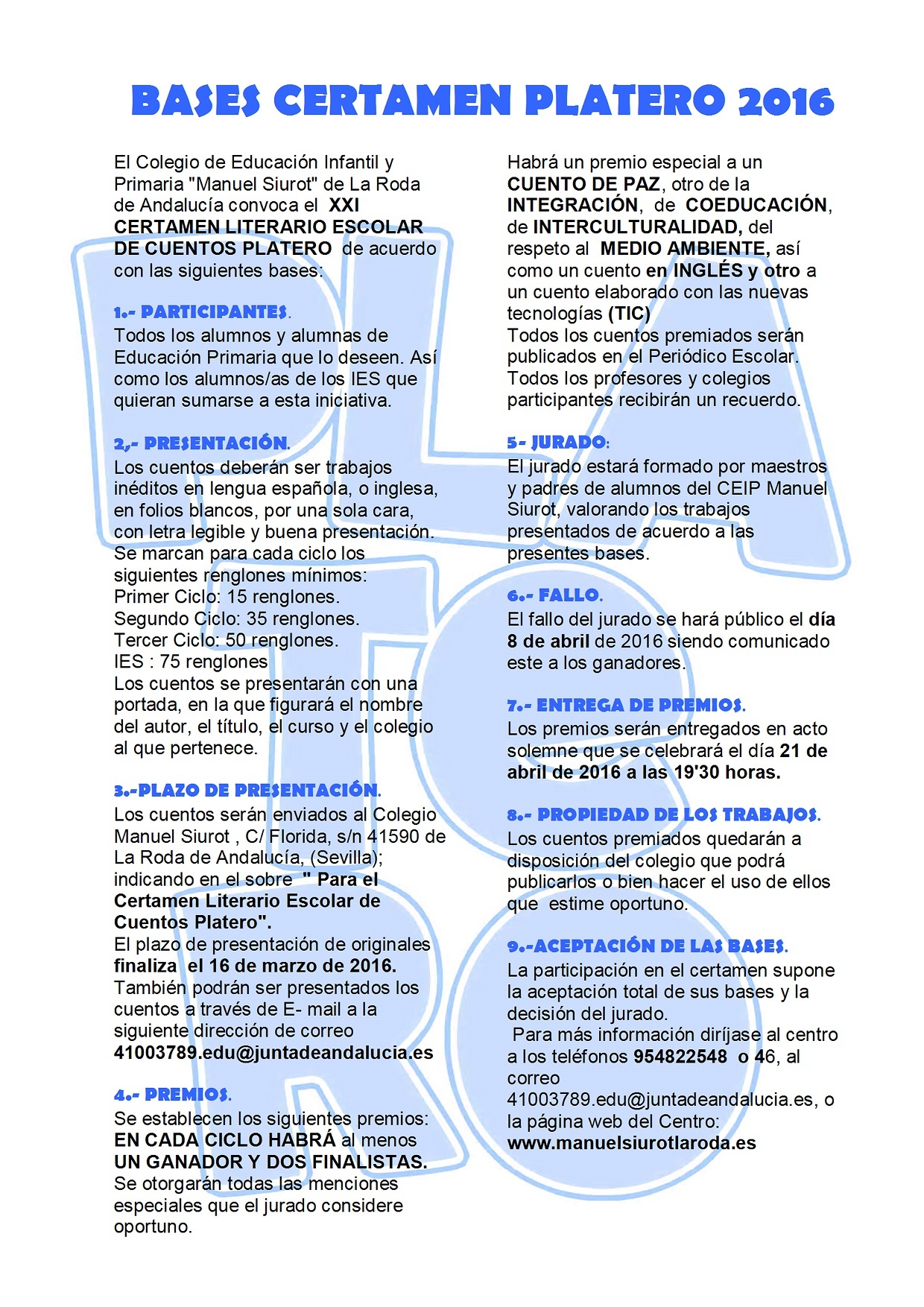 XXI Certamen Literario Escolar de Cuentos 'Platero'