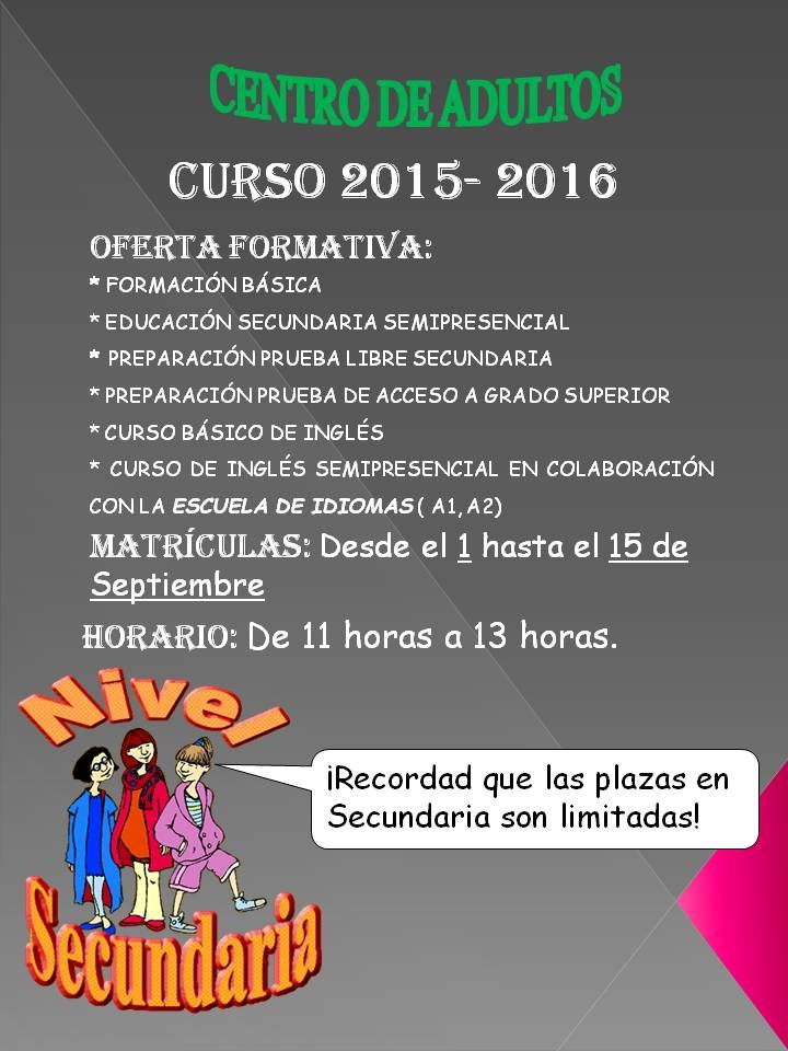 Oferta Formativa del Centro de Adultos Curso 2015-2016