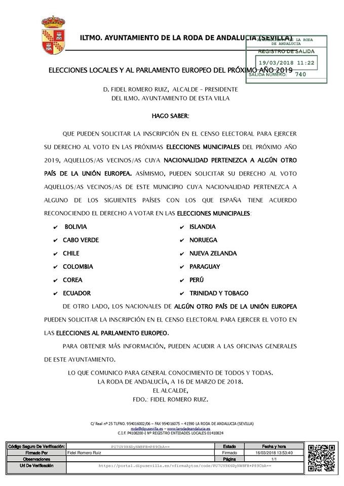 Bando Elecciones Locales y al Parlamento Europeo en 2019