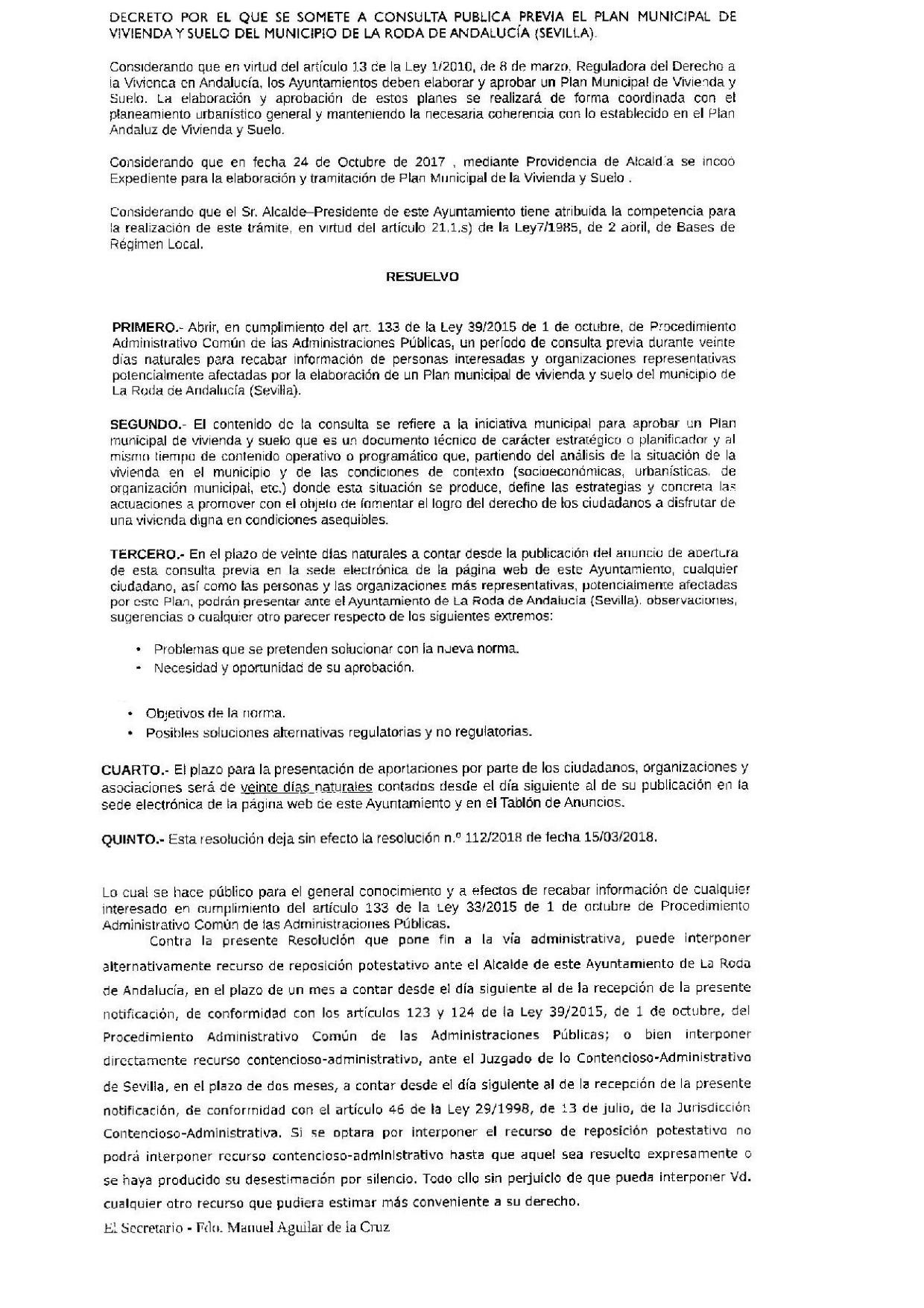 Decreto Plan Municipal de Vivienda y Suelo de La Roda