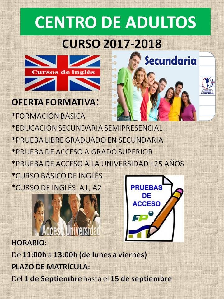Abierto el plazo de matrícula del Centro de Adultos para el curso 2017-2018
